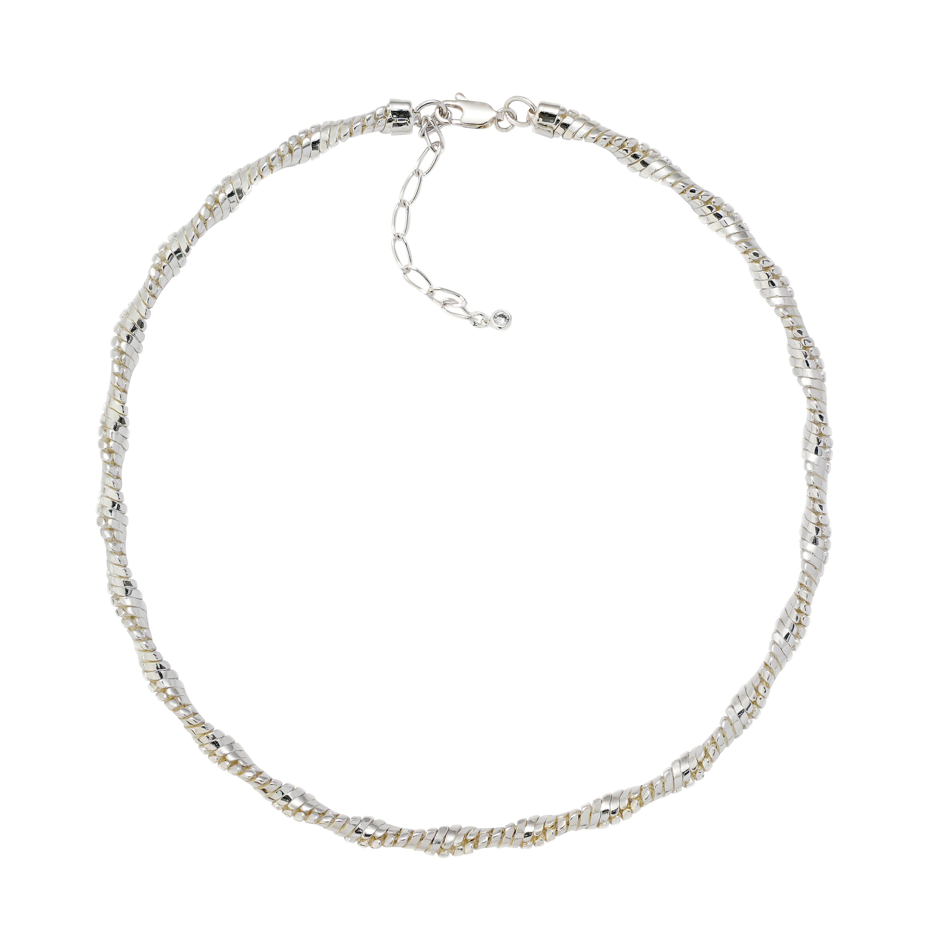 Inspired by the elegant spiral form of DNA, this necklace features a refined twisted texture that reflects light beautifully from every angle.