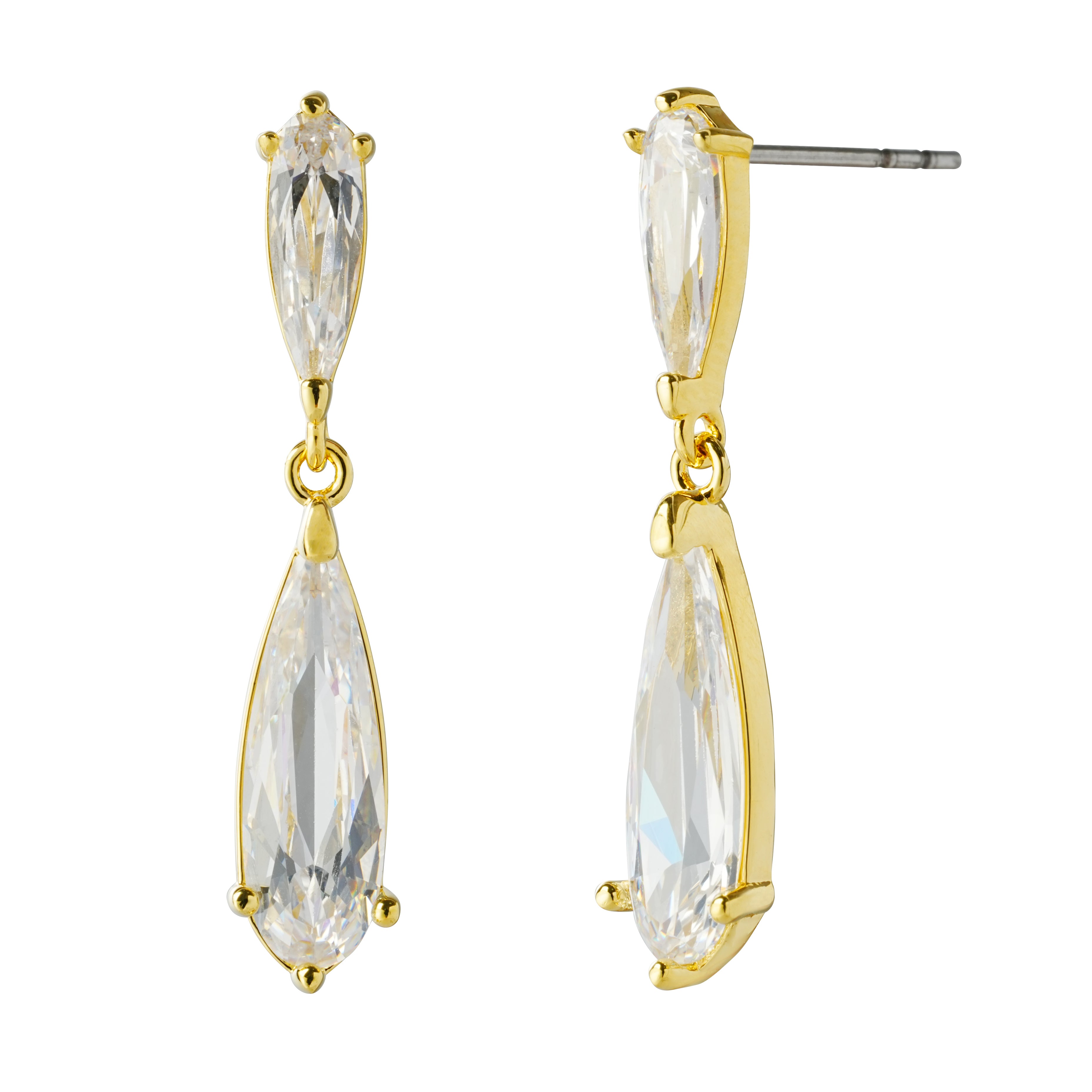 A refined, modern pair of drop earrings featuring two graduated pear-shaped 3A zircon, designed to catch the light with every movement. Crafted in high-quality brass with a durable 14K gold plating, this style blends simplicity with sophistication — perfect for both everyday wear and elegant occasions. The clean silhouette and precision-cut stones make it a versatile bestseller for contemporary jewelry collections.