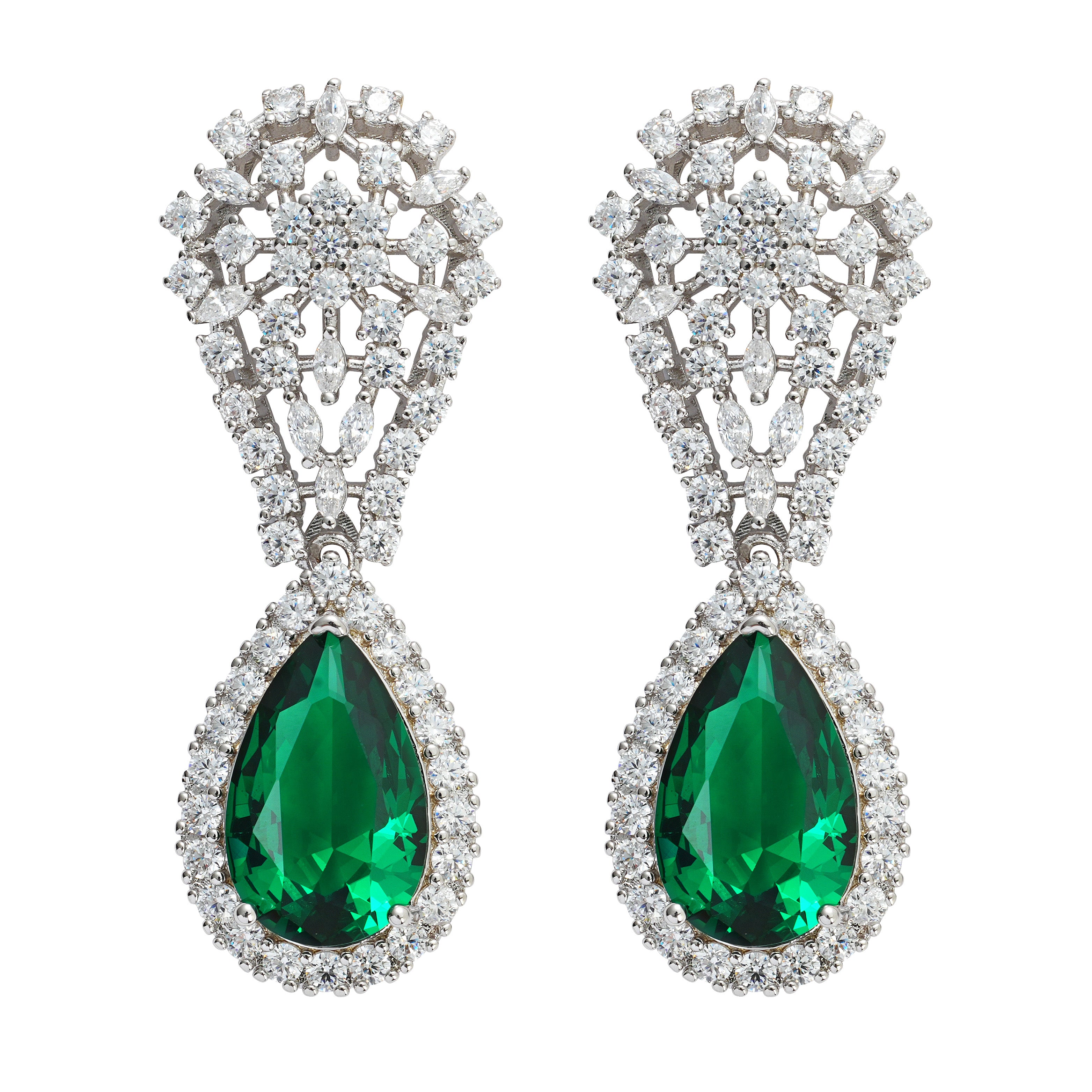 Radiating timeless glamour, these emerald green teardrop Cubic Zirconia earrings combine luxury and versatility — an ideal choice for brands sourcing premium brass or 925 silver jewelry.