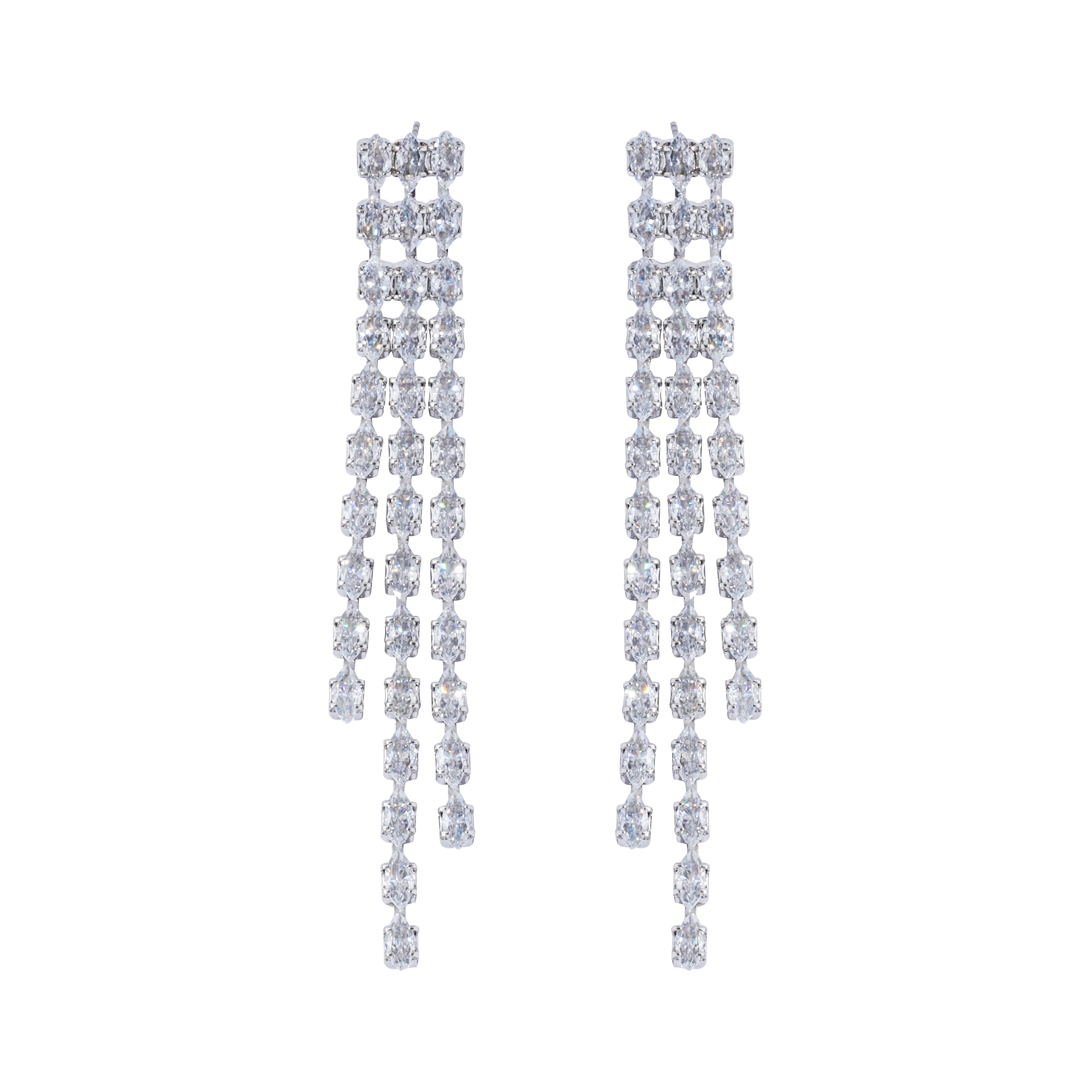 Shine from every angle with these Full CZ Tassel Earrings, featuring cascading strands fully encrusted with cubic zirconia for maximum brilliance. Designed to catch the light with every movement, these statement dangles are the ultimate choice for weddings, parties, red carpet moments, or any special night out. Elegant yet bold, they bring a luxurious sparkle that instantly elevates your look.