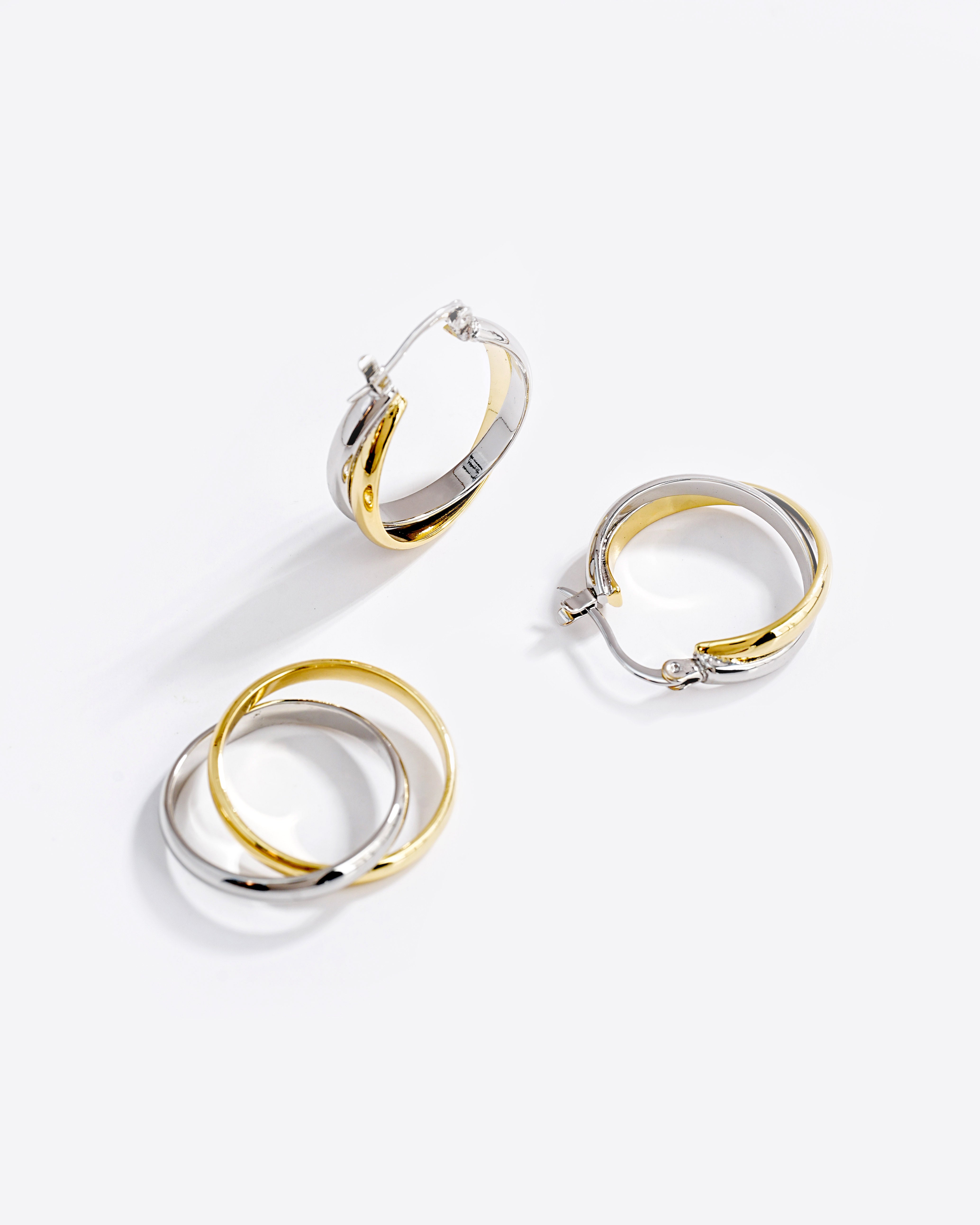 This two-tone jewelry set perfectly balances modern minimalism and timeless elegance.
