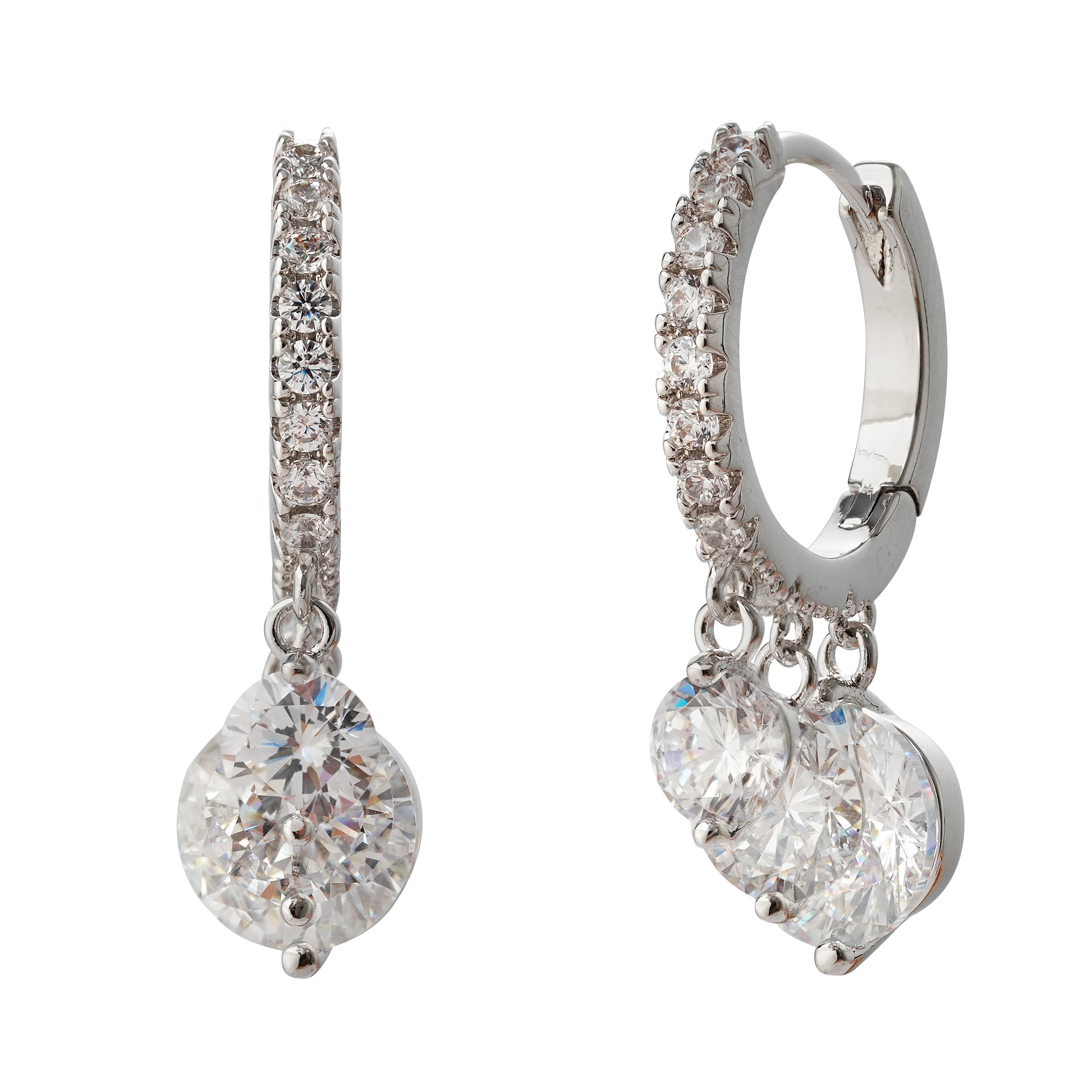 These refined hoop earrings are crafted from brass with a high-quality rhodium plating, offering a bright silver-tone finish and excellent durability. The slim hoop is pavé-set with sparkling 3A cubic zirconia, adding subtle brilliance and texture.