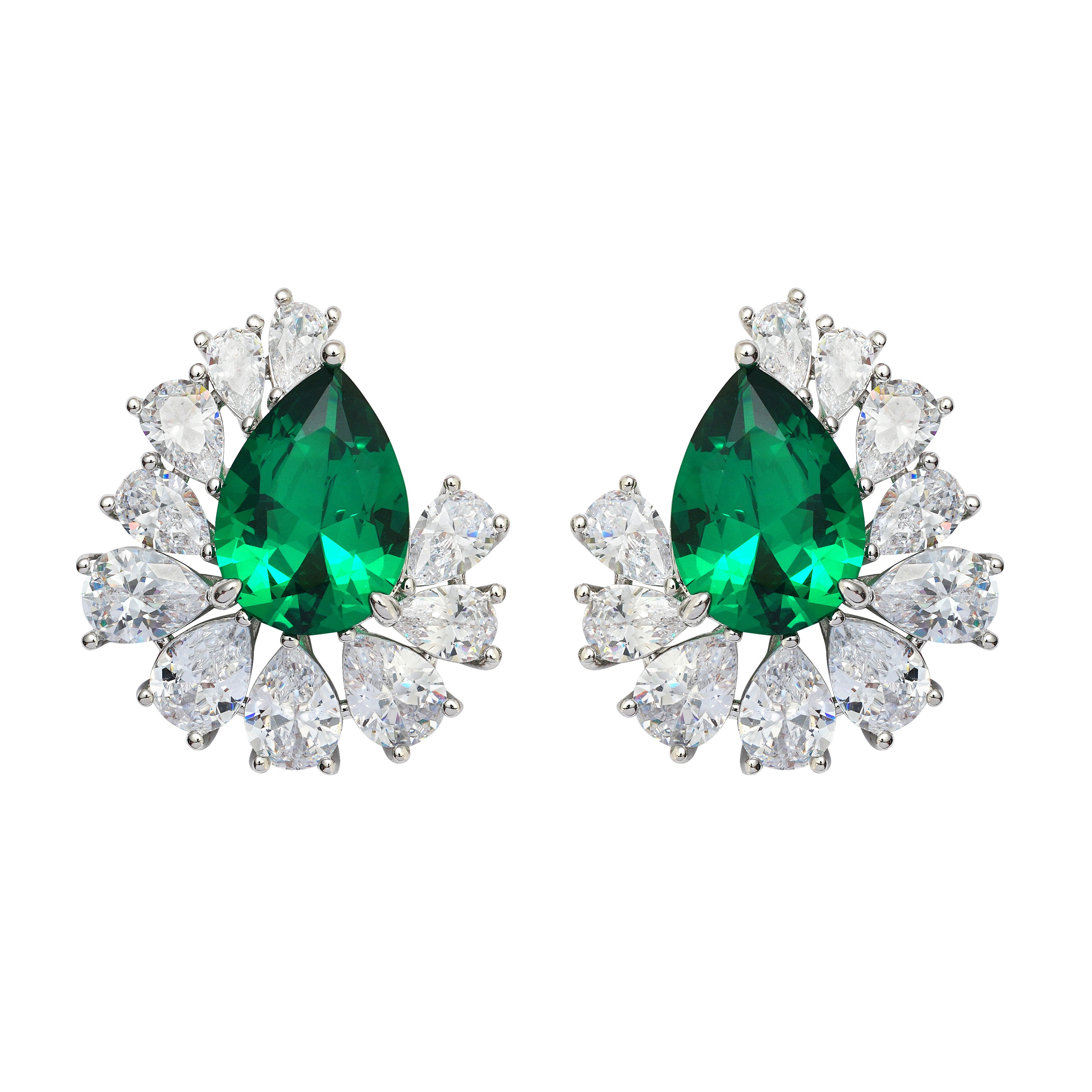 Elevate your jewelry collection with these emerald green teardrop cluster earrings, designed for brands that seek red-carpet sparkle and timeless elegance.