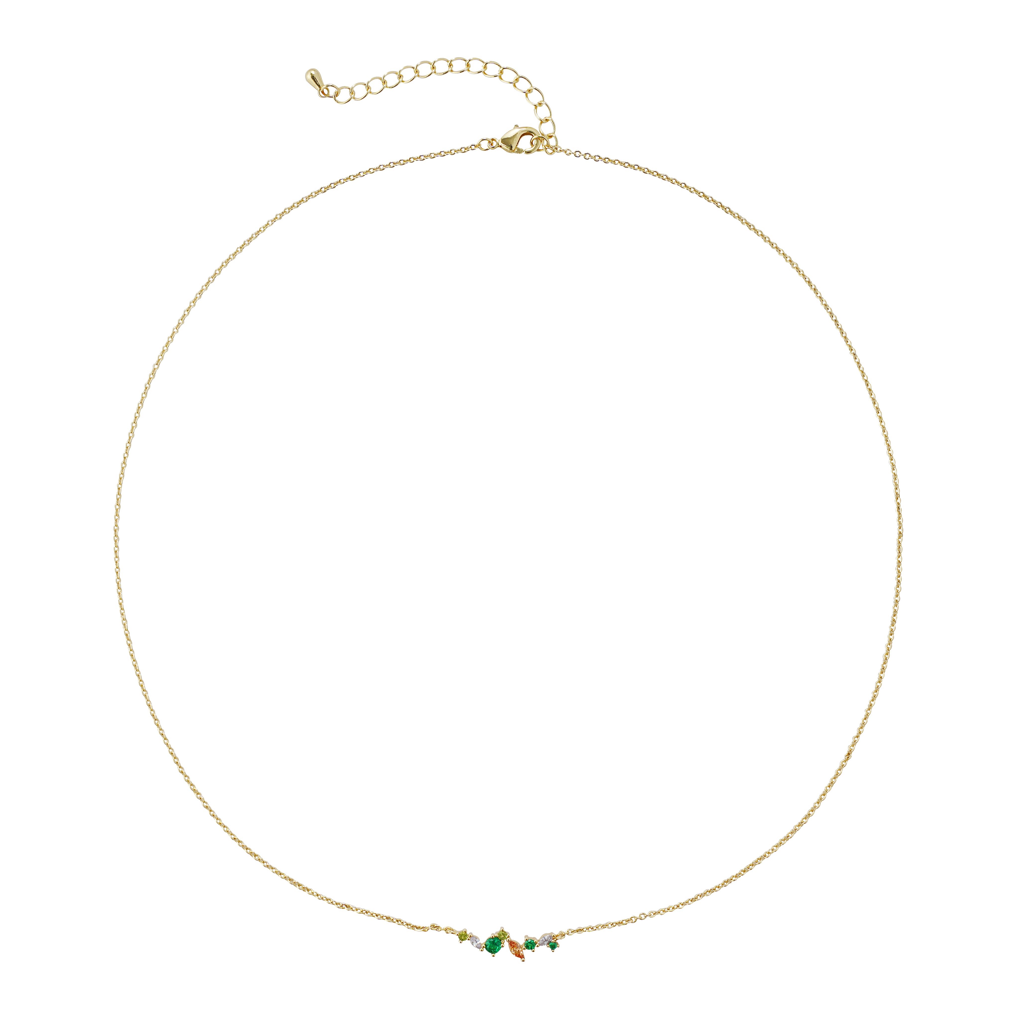 Lightweight, stylish, and elegantly modern — this necklace features a fine chain accented with a cluster of colored zircon stones in gradient green tones.