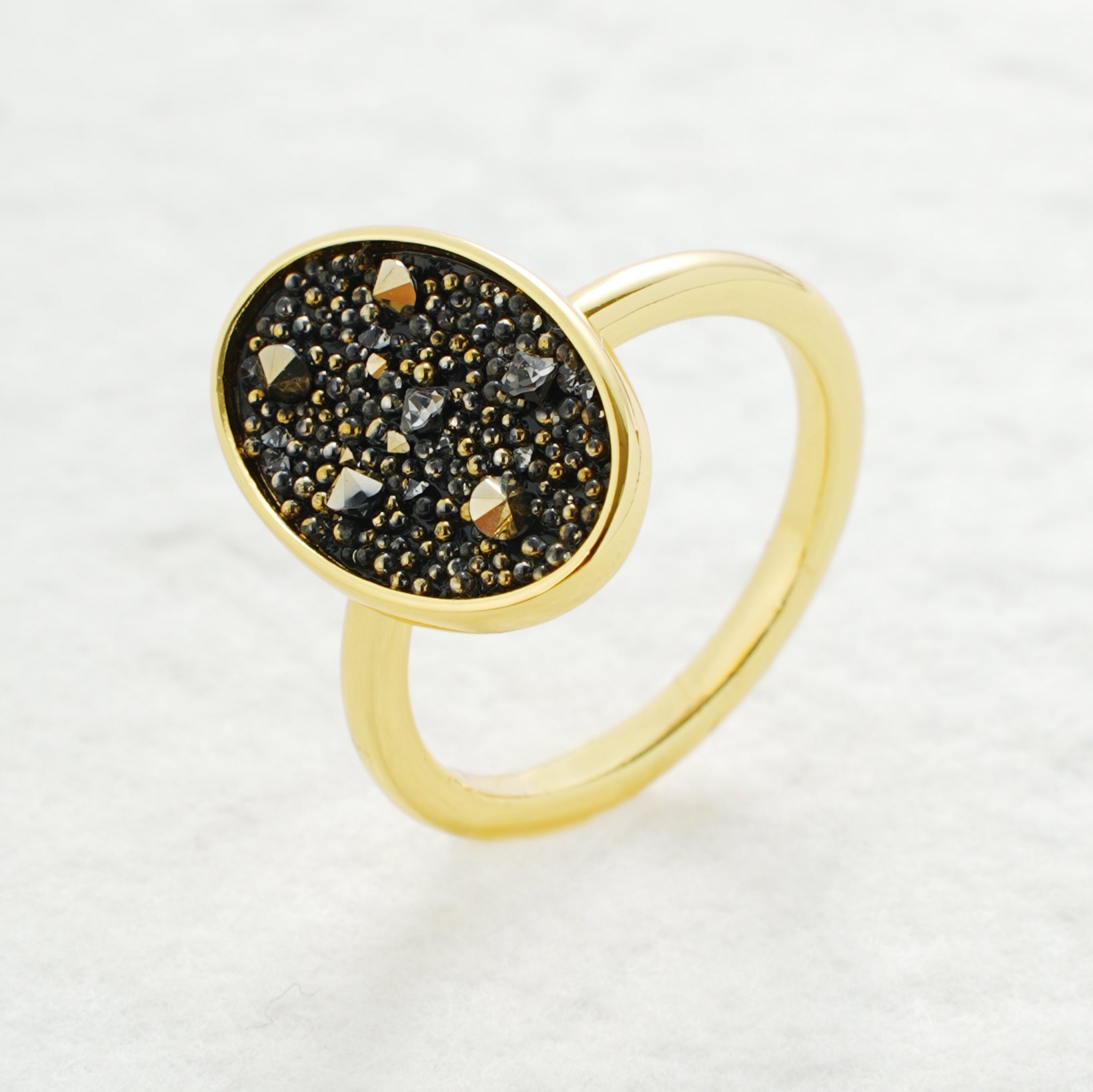 ✨ Elegant Design – Oval-shaped ring with shimmering black crystal fabric for a chic and modern look.