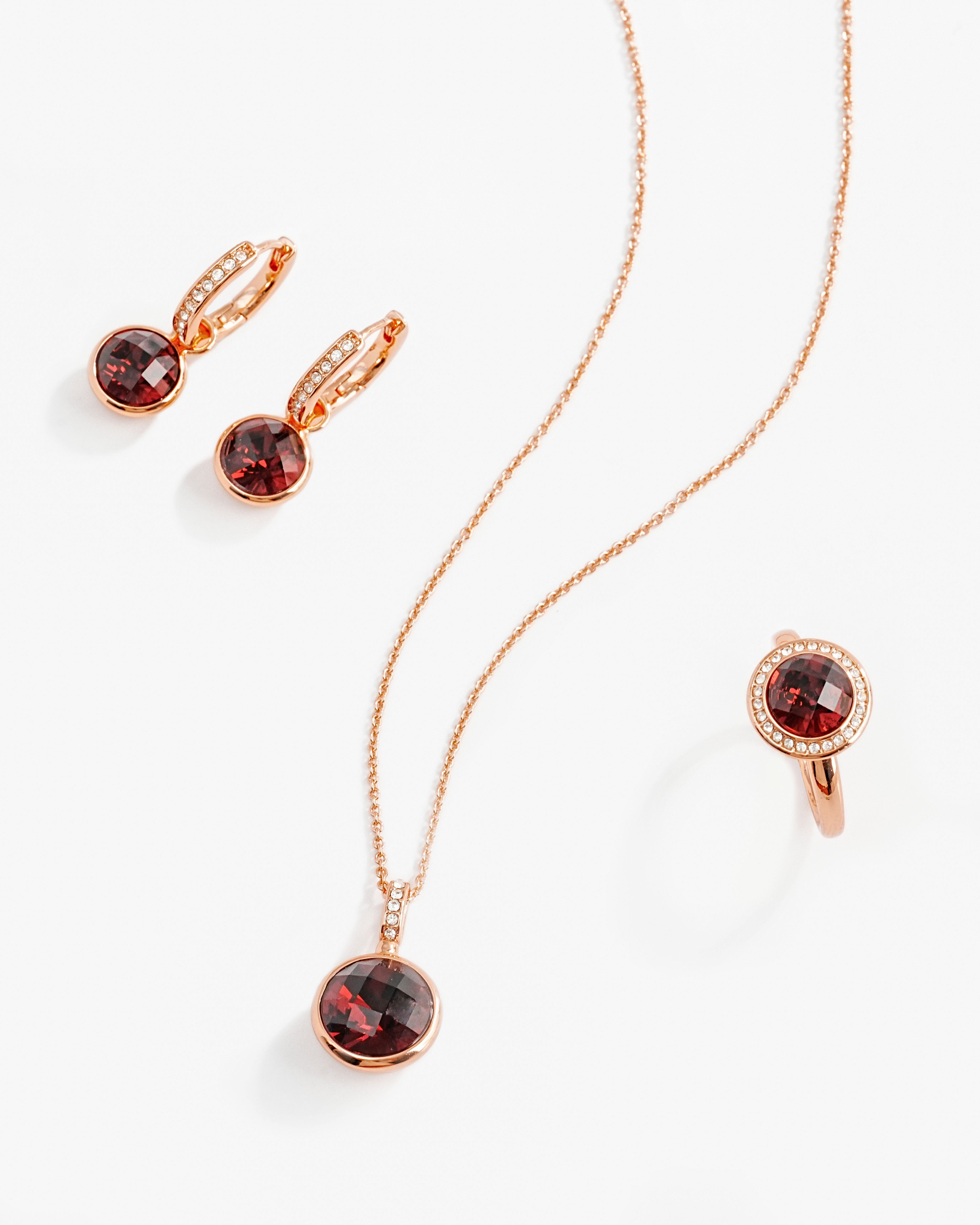 • Stunning rose gold-plated pendant necklace with a Burgundy rhinestone